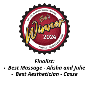 Throughout the years, Spa 31 has consistently earned recognition as Texoma’s “Best Day Spa/Med Spa” and “Best Massage Therapy.” Additionally, our numerous 5-star reviews and Small Business of the Year nominations reflect our dedication to exceptional service and client satisfaction.